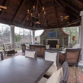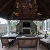 The finished basement adds flexible living space with a recreation area, home gym, and full bath. Outdoor living is elevated by a pavilion-covered patio designed for year-round enjoyment, featuring a substantial brick fireplace with built-in TV, a pool, and professionally landscaped grounds. A three-car garage completes this exceptional Gladwyne offering.