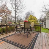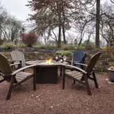 The rear deck is an outdoor oasis, ideal for al fresco entertaining or simply enjoying the picturesque views of the second fairway. The rear yard also boasts a custom stone fire pit area and an updated perennial garden, adding to the beauty of the surroundings.