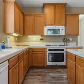- Kitchen Features: Breakfast Bar, Tile Counters, Dishwasher, Gas Range/Cooktop, Microwave