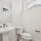 - Room Description: Shaw COREtec luxury plank flooring in Pasadena Oak, pedestal sink, neutral tones