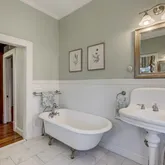 The details of this home will blow you away! Grand foyer effortlessly flowing to living room and dining room. The living room is so dreamy with wood floors, floor to ceiling built-ins, beamed ceiling, gas fireplace, and 2 sets of french doors leading to bright and cozy sun room. Large formal dining room offers loads of natural light and wood floors. Beautiful kitchen is an entertainers dream with gorgeous cabinetry, stainless steel appliances, island with cook top, butlers pantry, heated floors,...The details of this home will blow you away! Grand foyer effortlessly flowing to living room and dining room. The living room is so dreamy with wood floors, floor to ceiling built-ins, beamed ceiling, gas fireplace, and 2 sets of french doors leading to bright and cozy sun room. Large formal dining room offers loads of natural light and wood floors. Beautiful kitchen is an entertainers dream with gorgeous cabinetry, stainless steel appliances, island with cook top, butlers pantry, heated floors, table space, and access to extra large back deck. Even the walk upstairs will impress with arched stained glass window and crown molding in hallway leading to 5 bedrooms. Master bedroom is an oasis with gas fireplace, beautiful doors to sleeping porch/sitting room, walk-in closet with California closet system, and absolutely stunning master bathroom with claw foot tub, separate shower, double sinks, bay window, and heated floors. Floored walk-up attic, ready for your finishing touches. Basement is a separate in-law suite with kitchen, full bathroom, bedroom, and living space with direct access from back yard. Amazing Roland Park location tucked away but walk-able to all neighborhood amenities and easy access to 83. Not Under Neighborhood Restrictive Covenants Roland Park school district. Sellers offering 1 yr. home warranty covering all major systems & appliances.