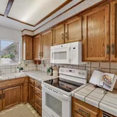 - Kitchen: Cooktop - Electric, Countertop - Tile, Dishwasher, Exhaust Fan, Garbage Disposal, Microwave, Oven - Electric, Oven Range - Electric, Refrigerator, Trash Compactor