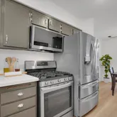 - Kitchen Features: Counter - Solid Surface, Dishwasher, Gas Range/Cooktop, Microwave, Refrigerator