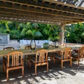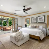 The thoughtfully designed floor plan features sophisticated living and dining areas with a chic bar, flowing into an open-concept kitchen with Sub-Zero and Viking appliances. Spacious bedrooms offer comfort and privacy, complemented by custom-built walk-in...This stunning single-level residence sits on approximately 0.87 acres in the heart of Montecito's coveted Cold Spring School District. Expansive glass walls and French doors open to a lush garden oasis, seamlessly blending indoor and outdoor living.