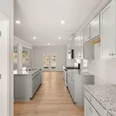 - Kitchen Features: Cabinets White, Kitchen Island, Pantry Walk-In, Stone Counters, View to Family Room