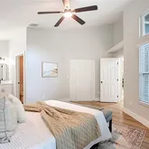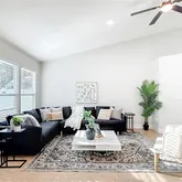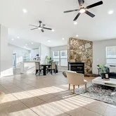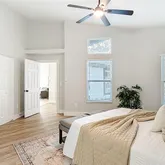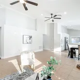 - Interior Features: Ceiling Fan(s), High Ceilings, Living Room/Dining Room Combo, Solid Wood Cabinets, Thermostat