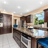 Welcome to this beautifully maintained Deauville home! Stepping through the double doors into your grand foyer, the shimmering marble tile floors, impressive high ceilings, plethora of windows with wide plantation shutters and striking crystal chandeliers will immediately captivate you! Directly off the foyer is a bedroom (or home office/den) with its own private bathroom & closet, or continue on to the stunning formal living area which boasts a dramatic spiral staircase lined with an elegant runner....Welcome to this beautifully maintained Deauville home! Stepping through the double doors into your grand foyer, the shimmering marble tile floors, impressive high ceilings, plethora of windows with wide plantation shutters and striking crystal chandeliers will immediately captivate you! Directly off the foyer is a bedroom (or home office/den) with its own private bathroom & closet, or continue on to the stunning formal living area which boasts a dramatic spiral staircase lined with an elegant runner. This living room features the first of 3 fireplaces and leads directly to the elegant formal dining room. Your luxuriously renovated kitchen warmly welcomes you with its rich dark cabinets and sleek granite countertops, complete with organizers, pull out drawers, separate trash/recycle bins, and a spacious island with built-in microwave and a secondary sink for effortless meal prep. With its stylish backsplash and high-end modern stainless steel appliances including a 6-burner & griddle cooktop, range hood, 2 dishwashers, 2 built-in ovens…this Chef’s kitchen is highly efficient! Directly off the kitchen and huge family dining area, you’ll discover the family room, the 2nd fireplace, and custom built entertainment center. The guest bath is conveniently located between the 2 living rooms. Across the hall from that is the laundry room, fitted with cabinets and a utility sink. Upstairs, the large bedrooms all feature dark wood flooring & custom wood organizers in the closets. Enjoy your huge primary bedroom with plenty of space for your own intimate seating area in front of the 3rd fireplace of this enchanting home. Here you have walk-in closets and huge en-suite bathroom with 2 separate sink vanities and a separate shower and soaking tub. Experience peaceful upper level views of your lovely Deauville neighborhood from the charming balcony. Outside in the backyard, you’ll immediately find the large open yard space and tall palms just awaiting your hammock for your own private oasis. Experience the ultimate outdoor patio with large terrace, nearly the full width of the lot! It offers an inviting outdoor living space with various areas for seating, wrapping around to the extra-wide side yard for even more opportunities. This also leads into yet another secret little garden space nestled between the living room and downstairs bedroom, and accessible from both. The property features a direct access 3 car garage & is nearby to the gated community area, pools & spa!