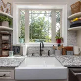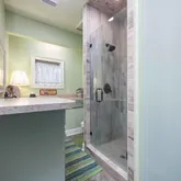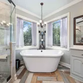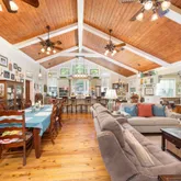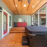 - Interior: Beamed Ceilings, Bookcases, Double Vanity, High Ceilings, In-Law Floorplan, Soaking Tub, Tile Bath, Wet Bar