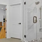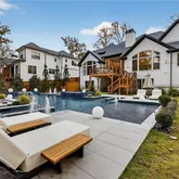 Upon entering, you're greeted by a grand two-story foyer that seamlessly flows into the heart of the home. The residence features two magnificent owner’s suites, one conveniently situated on the main level and another upstairs, each with spa-like en suite bathrooms and custom closets. The chef's kitchen is an inviting centerpiece, complemented by premium white oak floors. A custom-built mudroom with built-ins for accessible storage of everyday needs. Automated shades and upgraded luxury lighting throughout enhances the lavish living experience. The large unfinished walk-out basement, with plumbing for two additional bathrooms, provides the perfect canvas for your personal touch.