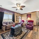 - Flooring: Carpet, Stained/Scored Concrete, Wood, Wood Laminate