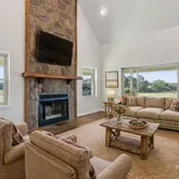 - Fireplace Features: Stone, Wood Burning