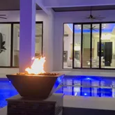 - Exterior Features: Covered Balcony, Covered Patio, Custom Lighting, Open Balcony, Open Patio, Outdoor Shower, Summer Kitchen
