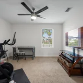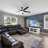 and custom designed closets. Laundry includes a 2022 LG Thin Q(SMART) Washer/dryer front loaders. The Primary bedroom with ensuite has an expansive walk in closet, separate shower tub feature, dual vanities and private toilet. This home offers upgrades galore including: HURRICANE Shutters, Reinforced garage door, custom window frames, hidden tv wire pass through, upgraded CAT5/6 in all bedrooms, alarms on all windows/entry and pre wired motion in dining; all covered by HOA. CO2 detectors, custom dining chandelier, blinds and fans with LED lighting and remotes just to name a few. Also, recently UPGRADED RECESSED color changing/dimming LED lighting). Enjoy your days and nights outdoors in this lush, tropical, private paradise with custom privacy wall and 6 ft white PVC fencing and 4 ft picket fence along the rear. 3 points of entry to the yard for your convenience. Plenty of room for a pool too! Master HOA includes: Cables(HBO), internet, phone, alarm. Dog park, T Trail, events at the square. VP HOA includes: Landscaping front and back, Sprinkler and maintenance front and back, weeding and trimming front, mulching and landscaping common areas pressures wash sidewalks. Don't miss out on this rare opportunity! Start living the Florida lifestyle now! New Photos coming soon