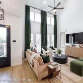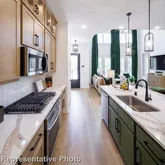 upgraded cabinets, countertops, under-counter and pendant lighting. Primary bath offers a separate shower and freestanding tub with upgraded tile. Leasing qualifications include a clean background, a credit score of 650+, and income of at least 3X the rent. Pet is case by case. Representative pictures are shown to illustrate the floorplan, home is leased with no furniture included Fridge, washer, and dryer are included