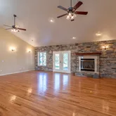 - Exterior: Cement Planked, Stone, Wood