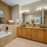 - Room Description: Large bath with tub and dual copper sink vanity