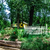 - Lot Features: Front Yard, Garden, Landscaped, Many Trees, Sloped, Wooded