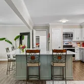 Inside, the home features a functional one-level layout with an open-concept design that makes everyday living and entertaining easy. The kitchen is the heart of the home, highlighted by a large island with quartz countertops, perfect for gathering, prep space, and casual dining.