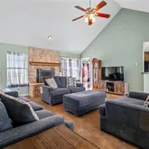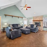 - Fireplace Features: Stone, Wood Burning