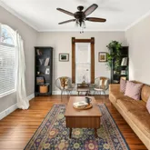 Upstairs, the private primary suite offers a peaceful retreat with a flexible sitting area or...Rich with historic detail, this charming home features beautiful interior touches that create a warm and inviting atmosphere throughout. The main floor offers a spacious living room with original cased windows, a dining area with classic built-ins, and a renovated kitchen with stainless steel appliances. A versatile secondary bedroom or home office and a convenient main-floor half bath complete this level.