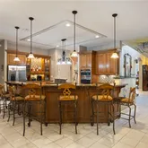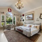 The estate includes a main residence, a guest wing, and a detached guest house—providing flexible accommodations for up to 50 guests. The heart of the main home features an open-concept kitchen that flows seamlessly into a large great room, ideal for hosting gatherings, meals, and game nights. The luxurious master suite offers a private retreat with large His and Hers walk-in closets featuring custom cabinetry, providing both elegance and functionality. The guest wing includes its own kitchen and additional bedrooms, while the detached guest house offers more private accommodations with a kitchenette.