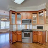 - Kitchen Features: Cabinets Stain, Kitchen Island, Pantry, Stone Counters, View to Family Room