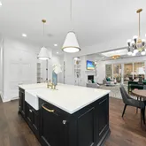 - Interior Features: Bookcases, Ceiling Fan(s), Crown Molding, Double Vanity, Eat-in Kitchen, Entrance Foyer, Kitchen Island, Master Downstairs, Quartz Counters, Room Over Garage, Smooth Ceilings, Soaking Tub, Stone Counters, Walk-In Closet(s), Walk-In Shower, Water Closet