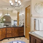 - Bathroom: Double Sinks, Granite, Primary - Oversized Tub, Primary - Stall Shower(s), Stall Shower, Stone, Tub