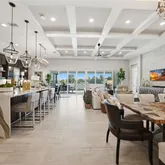 - Interior Features: Ceiling Fan(s), Coffered Ceiling(s), Crown Molding, Dry Bar, Eating Space In Kitchen, High Ceilings, In Wall Pest System, Kitchen/Family Room Combo, Living Room/Dining Room Combo, Open Floorplan, Primary Bedroom Main Floor, Solid Wood Cabinets, Split Bedroom, Thermostat, Walk-In Closet(s), Wet Bar, Window Treatments