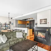 The living space is quite expansive, featuring an open floor plan with ample living and dining space, and it flows directly onto a large south-facing terrace overlooking quiet gardens below. This terrace is terrific for grilling and entertaining, featuring a direct gas grill hookup for the ultimate in convenience. The centerpiece of the living space is a corner gas fireplace which adds a warm and inviting ambience on a cozy winter day. There are windows on two exposures for maximum light and views, as well as a built-in home office nook — a 2021 essential!