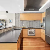 Brazilian Ipe hardwood flooring can be found throughout the apartment, as well as multi-zone radiant heating, central air conditioning, and additional closet space. Last but not least, the in-unit stacked and vented washer-dryer rounds out the appliance package to deliver all of the conveniences you need for gracious living.