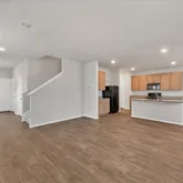 dining room. Upstairs you’ll find cozy carpet in the bedrooms. The tastefully designed kitchen offers sleek black