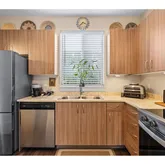 - Kitchen Appliances: Dishwasher, Disposal, Free Standing Range, Free Standing Refrigerator, Microwave, Quartz, Stainless Steel Appliance