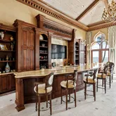 - Interior Features: Wet Bar, Entry Lvl Lvng Area, Laundry Tub, Built-in Shelves, Volume Ceiling, Walk-in Closet, Elevator, Bar, Foyer, Pantry, Fireplace(s), Split Bedroom, Ctdrl/Vault Ceilings
