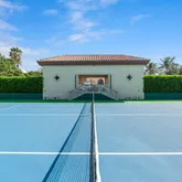 - Exterior Features: Fence, Open Porch, Summer Kitchen, Custom Lighting, Covered Patio, Cabana, Zoned Sprinkler, Auto Sprinkler, Open Patio, Tennis Court