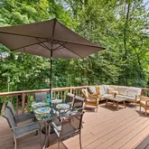 The eat-in chef’s kitchen features updated appliances and a new marble backsplash. The adjoining dining room flows seamlessly into the spacious living room, which opens to a large two-level private deck—perfect for relaxing, entertaining, or enjoying morning coffee while bird-watching. You’ll also love the covered front porch overlooking the quiet cul-de-sac.