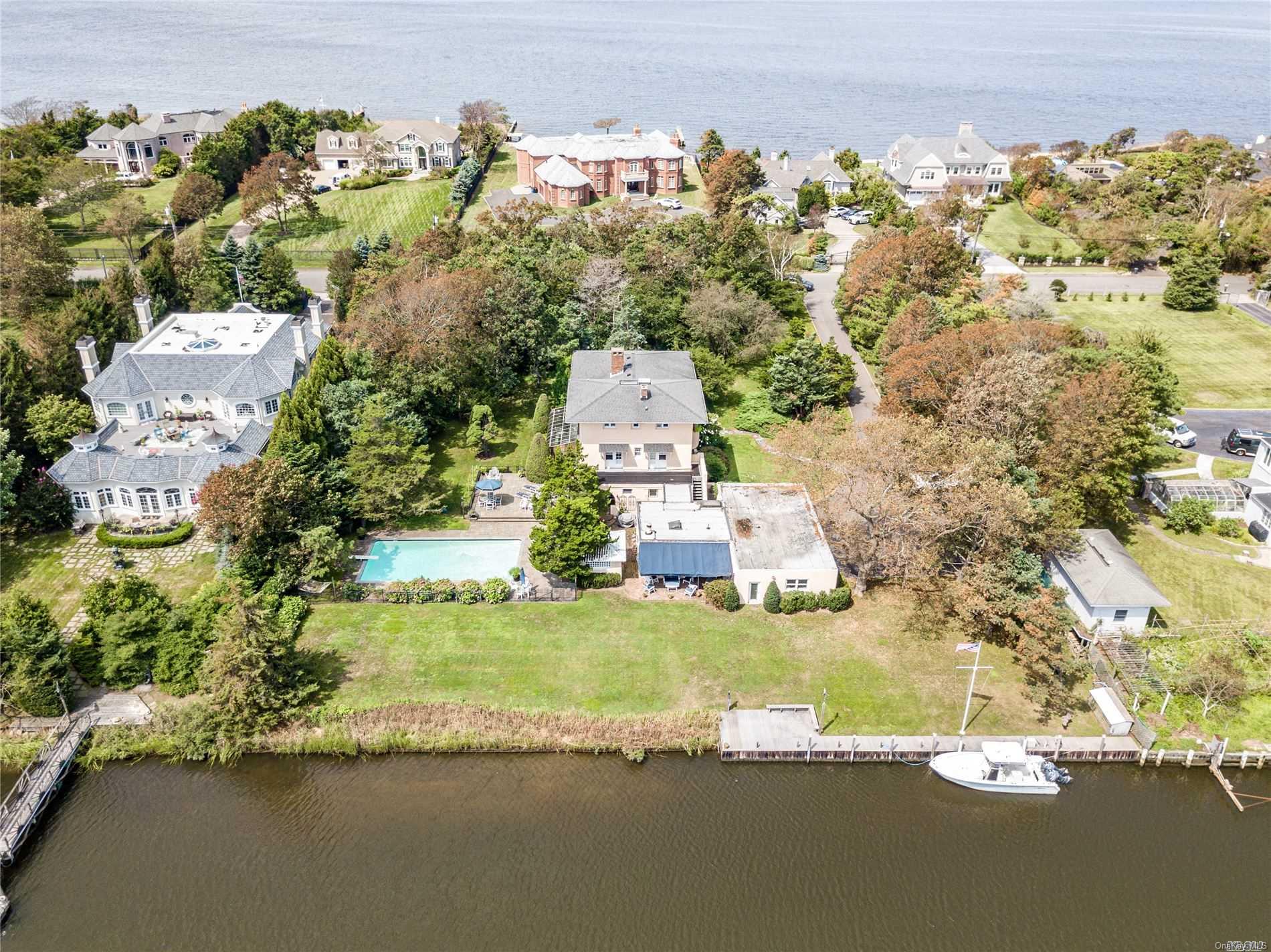 - Location Amenities: Dock/Mooring, Hardwood Floors As Seen, Eat in Kitchen, Formal Dining Room, Deck, Patio, Porch, In Ground Pool, Water View, Sky Light