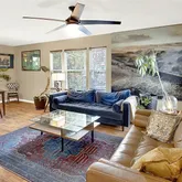 - Interior Features: AllBedroomsDown, Bookcases, CeilingFans, PrimaryDownstairs, MainLevelPrimary, MurphyBed, StoneCounters, Storage, SolarTubes, TrackLighting, TubShower, Vanity, WalkInClosets, KitchenFamilyRoomCombo, KitchenDiningCombo, Pantry, SolidSurfaceCounters