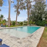 The primary ensuite is your personal sanctuary, featuring a walk-in closet that could double as a small boutique, and a windowed bathroom with a separate shower designed for a spa-like escape. Speaking of escapes, step outside to your private patio and yard, where a below-ground pool awaits for those sun-drenched Florida days. As the sun sets, enjoy the ambiance of your own fire pit and barbecue area, perfect for entertaining guests or just marshmallow roasting under the stars.