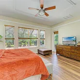 - Interior Features: Ceiling Fan(s), High Ceilings, Kitchen/Family Room Combo, Open Floorplan, Primary Bedroom Main Floor, Solid Wood Cabinets, Split Bedroom, Walk-In Closet(s), Window Treatments