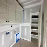 - Room Description: Walk in and on MAIN Level, Built in Cabinets and closet with WOOD shelving
