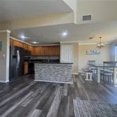 - Interior Features: Cathedral Ceiling(s), Ceiling Fan(s), Eating Space In Kitchen, High Ceilings, Kitchen/Family Room Combo, Open Floorplan, PrimaryBedroom Upstairs, Solid Surface Counters, Solid Wood Cabinets, Split Bedroom, Stone Counters, Thermostat, Walk-In Closet(s)