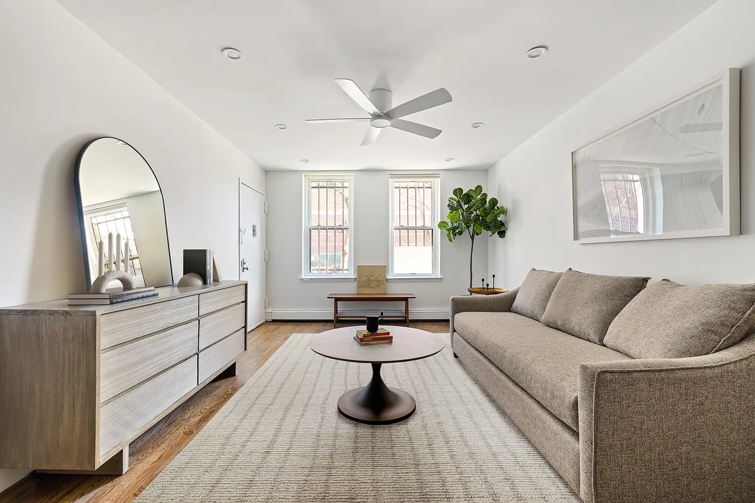 The spacious first floor condominium offers views of a large gated lawn and courtyard shared by residents of the Columbia Street Garden Mews. The inviting living and dining room features built-in shelving and beautiful oak flooring. The well-appointed kitchen...Welcome to 118 Union Street, where contemporary style meets timeless elegance and low monthlies. This stunning 2-bedroom, 1-bath apartment blends both modern charm and comfort, set in a peaceful, tree-lined neighborhood in the heart of Brooklyn.