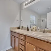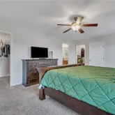 - Interior Features: Ceiling Fans, Double Vanity, High Ceilings, Kitchen Island, Primary Suite, Pantry, Pull Down Attic Stairs, Separate Shower, Fireplace, Programmable Thermostat