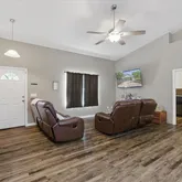 - Interior Features: Ceiling Fan(s), Open Floorplan, Solid Surface Counters, Split Bedroom, Stone Counters, Thermostat, Walk-In Closet(s)