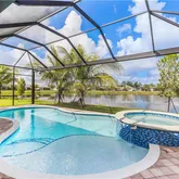 Private Heated Pool & Spa Home, Overlooking the Lake & Preserve. This highly sought after community offers a Prime Gulf Coast, Convenient Location, with 160 + Acres of Pristine Preserve Views and Over 3 Miles of Outdoor Trails. This is a fantastic Single Family Home offering 2 Bedrooms & 2.5 Bathrooms Plus a Den that can be used as an additional bedroom, located in Valencia Trails and Built by GL Homes in 2023. Living in Valencia Trails affords you access to the 42,000 Sq Ft Clubhouse offering 1st class amenities & a dynamic calendar of events. Amenities include a restaurant, poolside bar, resort pool, lap pool, resistance pool, hot tub, tennis & pickleball, bocce courts, dog park, social hall, fitness center, sports lounge, card rooms, cooking studio, spa, arts & crafts and more. This homes floor plan was designed with luxury and entertaining in mind, with an open floor plan & beautiful lake view, perfect for watching sunsets by the pool in the evenings. There is an attached 2 Car Garage & Private Driveway Space for parking additional vehicles. With a Publix shopping center located within just a few miles and Logan's Landing just down the street, Valencia Trails offers a convenient commuter location with plenty of options – you’ll have everything you need and so much MORE!