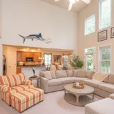 Welcome to this wonderfully crafted coastal contemporary home offering over 3,000 sq. ft. of refined living in the sought-after community of GlenRiddle. Step inside to a grand living room filled with natural light from a wall of oversized windows, anchored by a cozy gas fireplace. The open-concept kitchen flows seemlessly with a spacious dining area, creating the perfect gathering space. The first-floor primary suite is a true retreat with...Coastal Contemporary in GlenRiddle – Includes Boat Slip #73