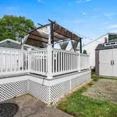 Additional highlights include central air, vinyl siding, and outdoor extras such as a gazebo, outdoor TV, and shed for storage.