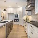 for entertaining or relaxing. The stunning kitchen boasts an oversized island, beautiful hardwood floors, and a generous