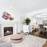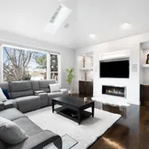 - Room Description: Modern horizontal fireplace, built-in features, skylight and large window saturating this room in natural light